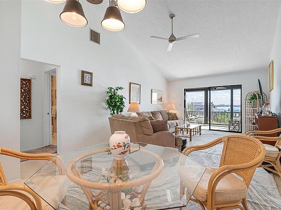 Exceptional and enchanting, this seaside condo is a hidden jewel on the bay, providing a direct intracoastal water view. It serves as the perfect gateway to Siesta Key, radiating all the coastal vibes and relaxed elegance of coastal living. As you step inside, you're immediately greeted by an airy ambiance, thanks to the high ceilings and open floor plan. The generous natural light pours in, creating a welcoming atmosphere, inviting you to express your creativity for a beach inspired theme. This condo features an expansive open floor plan that seamlessly extends to the lanai, which serves as additional living space. Here, you can indulge in endless views of the bay, where you might catch glimpses of dolphins playing and enjoy the tranquil charm of the gulf-all from the comfort of your home. This remarkable condo is a must see, not only for its stunning view, but also for the exceptional community amenities that enhance the Florida lifestyle experience. Residents can unwind at two inviting pools; store their kayaks for quick access to the waterways and engage in a friendly match on the tennis court. A leisurely stroll or bike ride leads you to the world-renowned Siesta Key beach, where powdery sands and azure waters invite you to bask in the sun. Close proximity to boating, jet ski rental, dining, and shopping options.