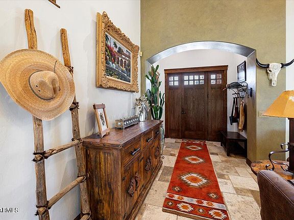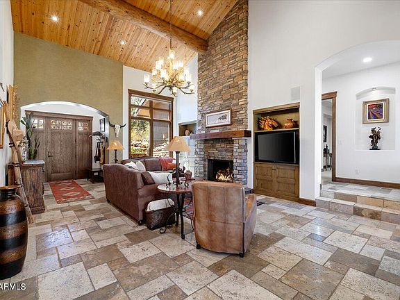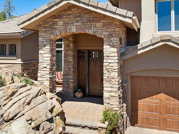 Designed by the esteemed Prescott Architect Joe Webb and expertly constructed by Naus Construction, this exquisite home is nestled in a gated community within the Hassayampa golf community, exuding timeless Prescott elegance. Recent upgrades include a new roof, state-of-the-art AC units, and an energy-efficient water heater, ensuring the utmost comfort and sustainability. The interior showcases architectural marvels such as beetle art timbers, knotty alder doors and cabinets, and a grand stove fireplace that adds a touch of rugged sophistication to the soaring great room. The gourmet chef's kitchen has been upgraded to perfection, featuring a spacious 9' island, high-end Viking ovens and range, and top-quality KitchenAid fridge and dishwasher. The thoughtful split design offers main-level living convenience, while each of the three bedrooms offers a private living area and ensuite bathrooms for ultimate comfort and privacy. The private backyard is a serene oasis, complete with a stone water feature and panoramic views that invite relaxation and contemplation. Residents have the option to enjoy membership at the prestigious Capital Canyon Country Club, adding an extra layer of luxury to this exceptional living experience.
