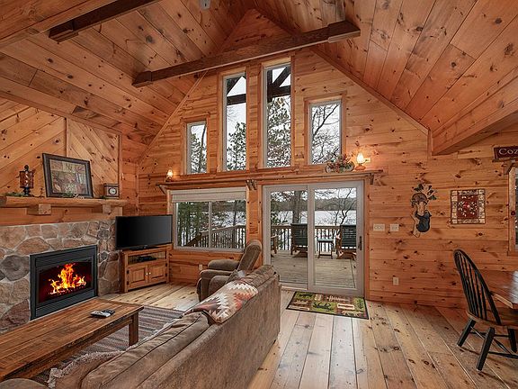 This home feels like a warm, cozy Northwoods hug, full of love & life. Its incredible, successful rental history is no surprise (over $60K last year & the family actively used it!). The rustic pine floors & walls hold the memories of times gathered in laughter around the dining table, evenings in front of a fire reflecting on the day & of early morning coffee on the deck watching the sunrise. The outside firepit conjures images of ghost stories told, smores & silly antics before stargazing as the day & the fire wind down. Every level has gorgeous views of Bass Lake, a crystal clear, spring fed private lake with a beautiful sandy shoreline. The Nicolet National Forest is next door & nearby trails offer miles of year-round hiking, biking, skiing & snowmobiling opportunities. Its perfectly situated just minutes from Eagle River for town conveniences. Rent it, live in it or enjoy a combination of both, either way, this home is PURE JOY!