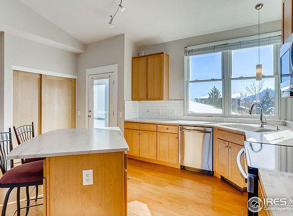End unit with fabulous flatiron and foothills views. New ss appliances, kitchen countertops, backsplash, paint and carpet. Open concept on main level with master bedroom, den, and 3/4 bathroom. Upstairs there is a loft-office, 2nd bedroom and full bathroom. One balcony and one patio. One car garage detached. Property is located in Silver Sage Village-an active adult cohousing community. Shared amenities include gardens and mature landscape, bike storage, woodworking shop ,and community house.