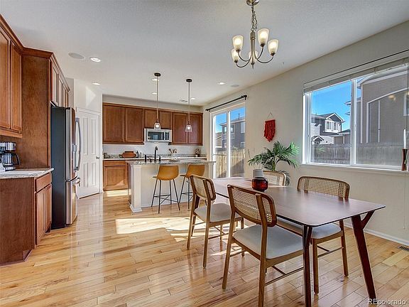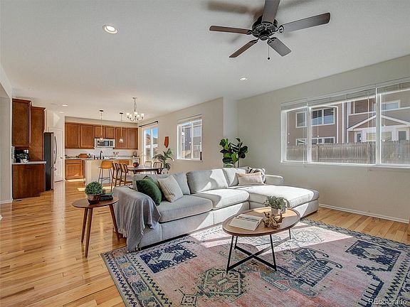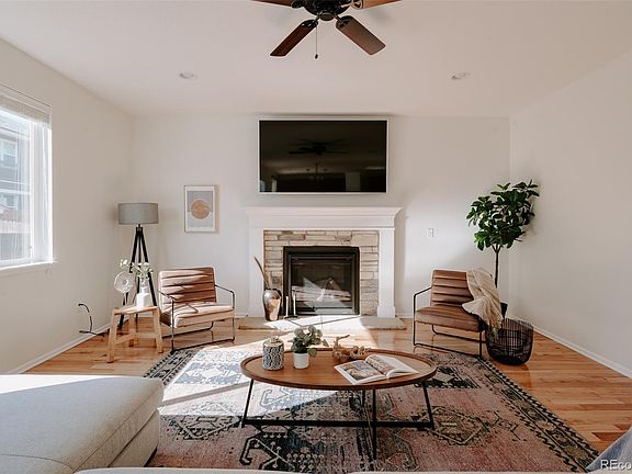 Stunning ranch style home with finished basement! Gleaming hardwoods throughout the main floor common spaces, brand new carpet throughout, new paint, new backsplash, and updated lighting and ceiling fans. Four bedrooms on the main floor including luxurious master suite with walk in closet and en suite bathroom. There is an additional full bathroom on the main floor along with the gourmet kitchen with large kitchen island, granite countertops, stainless steel appliances, and tons of natural light. The fully finished basement features the fifth bedroom, another bathroom, huge media room, and an additional family/living room. Fully fenced in yard, with professional landscaping, sprinklers, and a storage shed! Two car attached garage. 25 minutes to Downtown Denver, 15 minutes to the airport, close to parks and open space. Water heater replaced in 2022. This home truly has it all!
