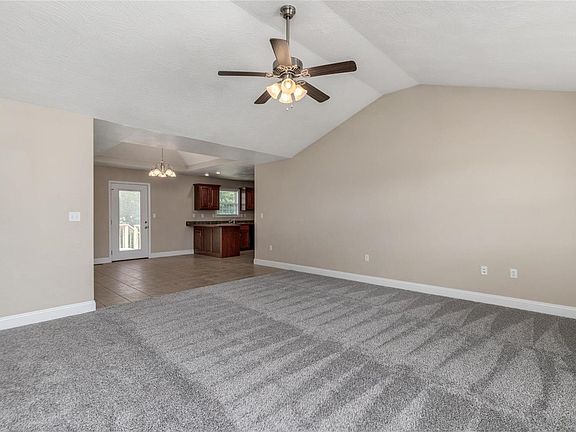 This gorgeous 3 bedroom ranch style home has style and space! This home features a beautiful brick front and covered front porch! Inside it offers a spacious open floor plan with a big vaulted ceiling in the living room that opens up to the large dining room and kitchen. The dining room features a double tray ceiling and ceramic tile flooring that flows right into the kitchen which offers a breakfast bar area, beautiful custom oak cabinetry, modern appliances, and a pantry. New carpeting has been installed in the living room and all bedrooms! The master bedroom is very spacious, having a double tray ceiling, full bathroom with a double vanity and a spacious closet. There are two more bedrooms that offer plenty of space & privacy plus a full bathroom. There is also a very good sized deck off the rear of the home giving view to the wooded area in the back and access to the yard. There is a spacious attached two car garage as well. Dont miss what all this property has to offer!