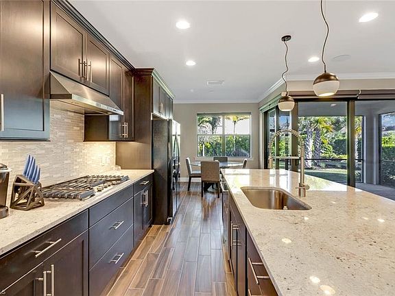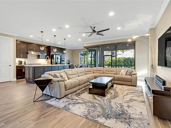 H.655 - Boutique community of 33 single family homes. This open concept home has a lot of upgraded features. The kitchen has a natural gas stove and built-in oven and microwave. Tile throughout the living area. The original builder floor plan has been modified to enhance the open concept. Other features include keyless entry, remote operated blinds, fans, lights, climate control. Zero corner sliders on the lanai, 8' interior doorways, crown molding, "tubes in the wall" pest defense system. Plenty of room for a pool, if desired. Verona Pointe Estates is located in north Naples west of I-75 in an "A" rated school district.