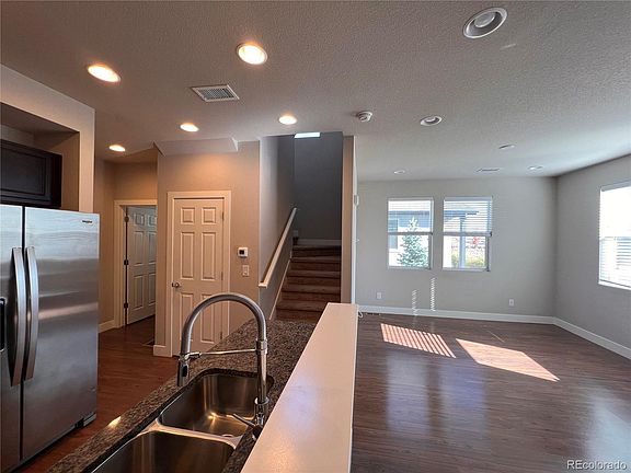 Beautiful 2-story End Unit Multi-Family Townhouse in Denver Connection West. This home features an open kitchen area with granite countertops, with all appliances all included, durable wood-inspired laminate flooring throughout the main level. The primary bedroom is a very spacious room, with a double sink and walk-in closet. The second bedroom has its own full bathroom. The laundry room is conveniently located on the bedroom level and the washer and dryer are included. Two car garage and plenty of street parking for guests. This property is conveniently situated w/in 2 blocks from Costco. Featuring 40 Acres of Park and Ameminites, a pool, clubhouse, and dog park/wash. Just minutes from DIA, easily accessible I-70, and I-225, shopping, and dining. Contemporary property built in 2018.