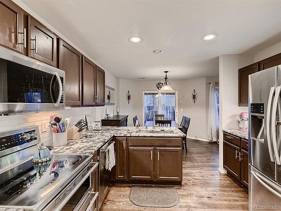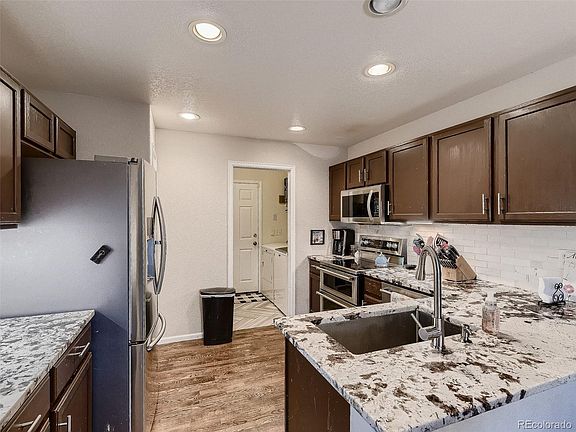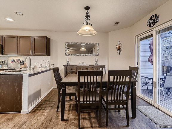 You Cannot Beat this Highly Desirable and Sought After Southcreek Location, Cherry Creek Schools! As you step inside, you'll fall in love with the stunning on-trend hardwood flooring and large picture windows throughout that create an abundance of natural light. The showpiece of this home is the beautifully upgraded kitchen with top end exotic Alaska slab granite, full stainless steel appliance package with French door fridge, breakfast bar, and a sunny eat-in dining nook. The warm and inviting family room is the perfect place to relax and unwind, with built-in surround sound for watching your favorite movies, favorite show to binge, and game days. The main floor mudroom with herringbone tile detail keeps you organized, and the powder bath was lovingly remodeled as well. The primary suite is a true oasis, providing ample space for a sitting room and a flex nook that the sellers are currently using as a home gym. The luxury remodeled bath has a spa-like jetted soaking tub, impressive designer tiling, and don't miss the incredible walk-in closet. The two secondary bedrooms are quite spacious as well. Step outside onto the ample back deck and see the rare and large private yard complete with space for a garden. This is the lovely setting for outdoor entertaining and enjoying Colorado's famous outdoors. Just across the street is the Cherry Creek Trail, which allows you to walk or bike from Franktown all the way to Confluence Park in Downtown Denver. The 2-car attached garage is a delight and offers additional space for storage. New furnace and water heater. This Arapahoe County location puts you right in the middle of everything the south east Metro Area has to offer, including endless options for dining, shopping, and entertainment. And with a great central location you are close to all major traffic thoroughfares, Centennial Airport, and DIA. Come visit today!