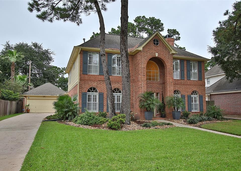 Beautifully appointed home with custom millwork, crown moldings and plantation shutters throughout. Island kitchen boast custom granite, travertine backsplash, stainless appliances, large tile flooring, plus gas cook-top for the chef in the family. Family room with rich cherry wood flooring, gas-log fp and wet bar. This room opens up to another space through french doors, used now as mancave but could be gameroom or larger formal dining. Perfect for entertaining! Master and secondary bedrooms upstairs along with an extra room with built-in shelves/desk at the top of landing. Master bathroom updated with nice granite and seamless glass shower. One of the best features of this home you will find out back, a tropical oasis. Pool has been resurfaced and lovely rock landscaping. This home is brick on all sides. Electrical box is updated. Garage walls have been sheetrocked and painted. Your kids can walk to Brill Elementary! Close to everything! HOME DID NOT FLOOD!