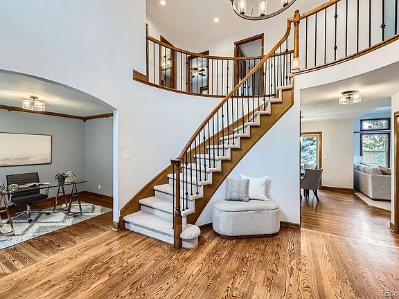 Beautiful Five Bedroom, 4 bathroom home that backs to open space in Piney Creek! As you enter the home, you are greeted by the updated solid wood front door and side lights, notice the grand foyer and wraparound staircase. The main floor is complete with solid oak flooring throughout. The kitchen is complete with quartz countertops, stainless steel appliances, plenty of cabinet space, marble tile backsplash, gas range and hood! Don’t miss the dining niche, pantry and extended window above the kitchen sink which brings in tons of natural light. Also on the main floor you'll find a comfortable living room, cozy family room with fireplace, study, mud room, and powder room. Upstairs has the spacious primary bedroom with large walk-in closet, ceiling fan, and attached gorgeous five-piece bathroom with soaking tub and double sink. Also upstairs are three more good sized bedrooms near another full bathroom. Heading to the basement, notice the large, open rec room which is perfect for movie night. In the basement you'll also find another large bedroom with massive walk-in closet and its own beautiful full bathroom. The laundry room is right off the 2 car garage and has a built in cubbies and shelves. Enjoy BBQ's and large gatherings on your massive back patio finished with high quality stone pavers and take in the privacy of mature trees. Piney Creek is part of the coveted Cherry Creek School District, within close proximity of shops, restaurants, and trails, and complete with tennis courts and a pool. Schedule your showing today!