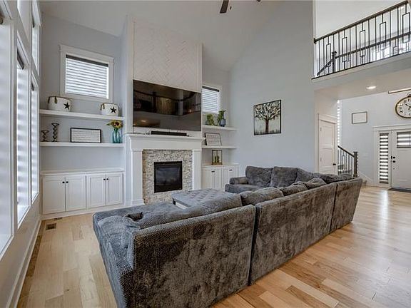 Welcome to Symphony Farms..one of the most sought after neighborhoods in Gardner! GORGEOUS 1.5 Story "THE BLAINE" is loaded with every finish you could want! THIS IS A MUST SEE. Spectacular entry as you are greeted by a grand 2 story foyer that opens into a great room with views of the 2nd floor loft and breathtaking fireplace. Kitchen features large island, beautiful white cabinets, lots of counter space. gas cooktop, microwave oven stack. Walk in pantry, mud room and large breakfast room which opens up to your deck through a sliding door. The 2-story family room with lots of windows letting natural light in has gas fireplace and builtins on each side. Spacious primary suite features an accent wall. Primary bathroom has his and her sinks and walk in shower. 2nd floor loft is great for kids play area. Large secondary bedrooms with large walk in closets. Two secondary bedrooms share a Jack n Jill WITH THEIR OWN SEPARATE VANITIES! (no more fighting on who is making the mess!) and the third has its own private bath. Bonus.... the basement already has flooring and plumbing fixtures! And additional outlets throughout! Bonus area for kiddos to do crafts, tumbling or hanging out with their friends! For those who love to tinker around in the garage.... you will love that it has ac and heat!!! You will also LOVE the 2 Motorized blinds on the top windows of the main floor and life time warranty and Bonus Newer Watermax whole house filter and drinking water and Newer Electric Tankless water heater. A new concrete Patio added to the backyard, Sprinkler System, and Landscaping and a Retaining Wall. Blinds throughout and fenced backyard! This home is great to entertain your family and friends. Next year you and your close friends will be sitting on your deck and patio watching the fireworks at celebration park which is in walking distance. Symphony Farms has a pool, pickle ball and basketball court, clubhouse, and trash and recycling are included in the HOA dues!