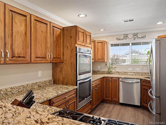 One story living in popular Buffalo Mesa. As you step foot through your new home you are greeted by stylish luxury vinyl flooring. At the heart of the home is a stunning gourmet kitchen that caters to your culinary desires complete with sleek stainless steel appliances, granite countertops, double ovens, gas range and ample space for meal preparation. As you stroll through the home, you enter a sunny dining room and spacious living area complete with a magnificent custom fireplace. Three generously-sized bedrooms are tucked away on the side of the home, each providing a private sanctuary for rest and relaxation. The primary bedroom has an en-suite bathroom and an expansive closet. Outside, the large backyard offers a sense of tranquility and ample space for outdoor activities. Close to shopping, schools and highway access, this location cannot be beat!