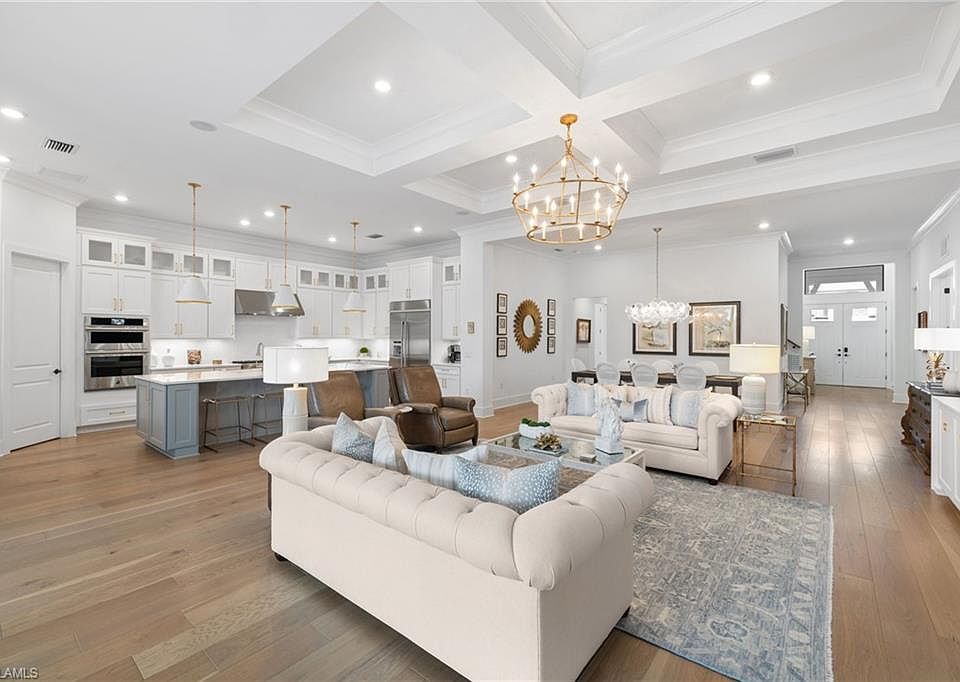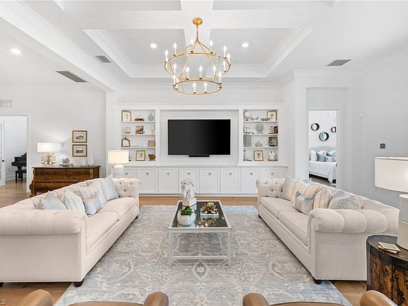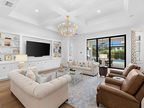 For the buyer who demands nothing less than perfection, this extraordinary and sophisticated residence delivers the ultimate in luxury and design. Over $200,000 in custom enhancements beyond builder options have transformed this home into a showcase of refined elegance with every fixture, finish and detail thoughtfully curated. From designer mirrors and light fixtures to custom cabinetry and hardware, no expense was spared in creating a truly one-of-a-kind masterpiece. A first-floor owner’s suite offers a private retreat with a spa-like bath featuring an oversized soaking tub, a spacious walk-in shower, dual vanities and an expansive closet. Also on the main level, you’ll find two additional bedrooms and a versatile den that can easily serve as a fifth bedroom. Upstairs, a large bedroom, full bath and loft provide the perfect space for guests or additional customization to include another bedroom. The gourmet kitchen is a chef’s dream anchored by an oversized island, premium GE appliances, a gas range and three ovens. Rich engineered wood flooring, custom built-ins, crown molding, Sonos sound system and 7-inch baseboards add layers of sophistication throughout. Set on a desirable corner lot, this home boasts panoramic lake views and a private lanai, framed by lush privacy hedges. The gas-heated saltwater pool and spa create a tranquil outdoor escape, complete with an outdoor kitchen and a convenient pool bath. Storage abounds in the extended three-car garage. Located North Naples in a gated community, this home offers natural gas, cutting-edge smart home technology and a fiber-optic network. Just minutes from upscale shopping, dining and entertainment, this property defines modern luxury and effortless living.