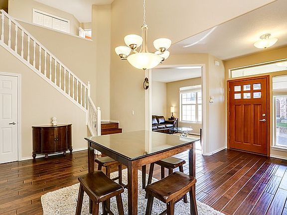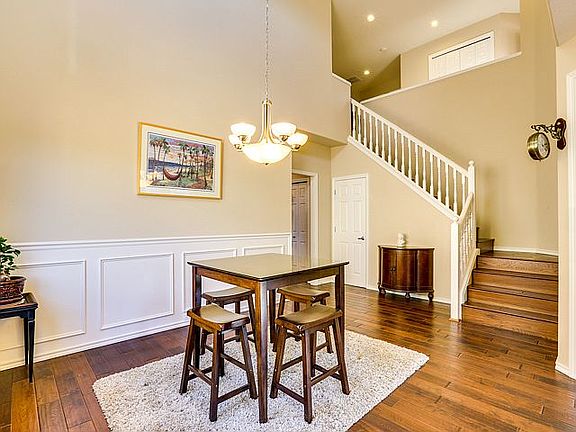 Enter the home into the formal dining room, where high two-story ceilings tower overhead. A multitude of generous windows and skylights highlight classic wood floors. The floor plan flows into an open concept great room, where the family room boasts a timeless gas fireplace, and a built-in entertainment center. Enjoy easy access to the backyard through sliding glass doors from the informal dining area. In the kitchen, granite countertops, bright wooden cabinetry and modern appliances create a wonderful area for meal preparation.