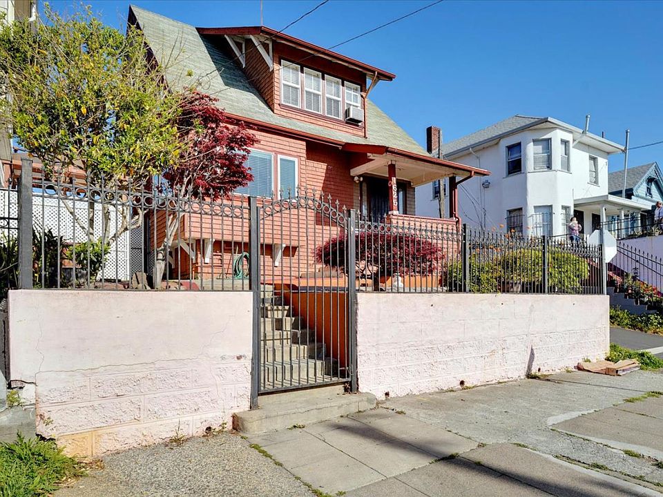 Upgraded to perfection!! Located across from school!! Private gated entry and backyard gate for parking!!! Beautiful Brazil cherrywood laminate floors throughout this very sunny and well lite home!! Pride of ownership here!! Upgraded windows and blinds offer this cheery home it's personality!! Fashioned and designed with a very fashionable and "antique" looking exterior.....will please any buyer!! Recessed lighting!! You will enjoy the formal dining room with built-in serving hutch!!! Upgraded kitchen with granite and easy care tile floor!! Home features a downstairs bedroom and full bathroom!! Gas heater downstairs and separate wall heater upstairs!!!! Washer, dryer and refrigerator to stay!! Gated concrete backyard area for parking, features a storage shed and extra room with kitchenette for that outdoor entertaining!! Nice side yard,,,,very sunny....ideal for gardening or plants!! This is a "super" cute home...just waiting for the next family to enjoy!!