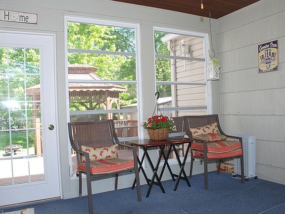 This lovely 3 bedroom bungalow is located on a quiet street and has been lovingly maintained. This home is furnished with a full compliment of NEW stainless steel appliances! The kitchen also offers newer oak cabinets and counters. And the vinyl flooring was replaced in 2006. The cozy living room has a wood burning f/p that has been converted to gas logs, and the master bedroom has a half bath. The huge bedroom on the second floor is 35 x 12 and could easily be divided into two bedrooms. There is a breezeway between the kitchen and the garage that leads to the deck, gazebo, and back yard. The lower level has been waterproofed and has a partially finished rec room and a work shop area. There is also a step-in shower and a water softener. A small building in the back yard is perfect for storage. Call for your appointment today!