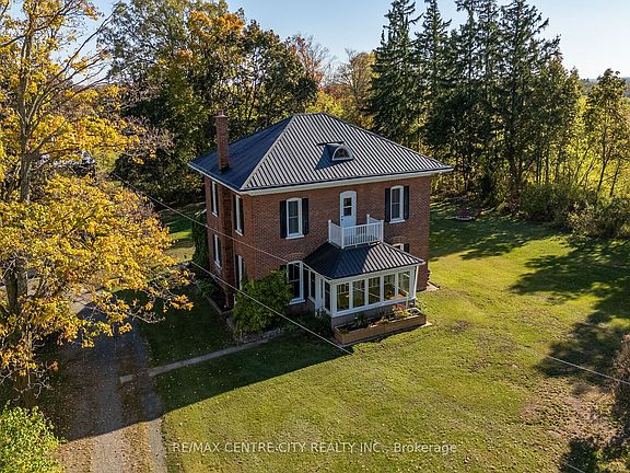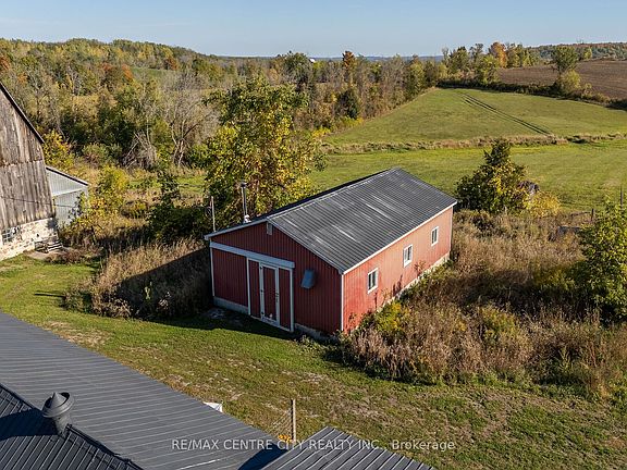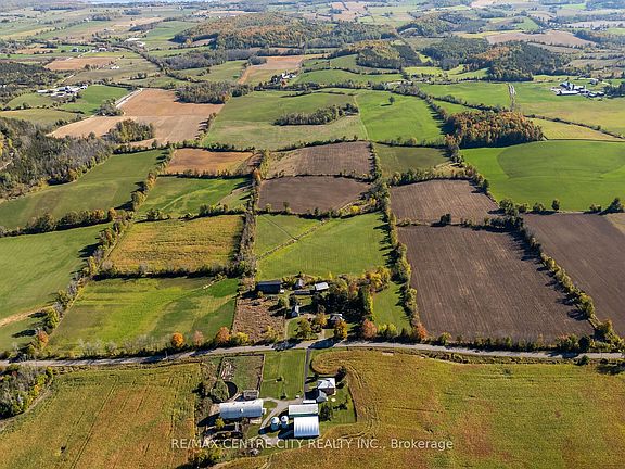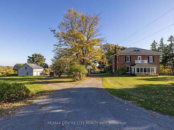 One of a kind Country Estate / Hobby Farm situated on a picturesque 100 acre parcel only 5 minutes East of the beautiful town of Campbellford. Featuring a very well maintained 3 bedroom, 2 bathroom Century Home, a great set of outbuildings and productive farmland , this property would make for a great spot to build family dreams. The residence, an 1885 built double brick farm house is situated on a paved road in between mature trees and offers spacious and bright living spaces with timeless character with its original trim, mouldings, flooring, stairs etc. It also has many recent updates including re-pointing (2024), windows (2023), electrical (2023), pantry (2022), upstairs bathroom (2001) The main floor features a large foyer with access to the West facing patio, the kitchen with island and large pantry, a 2pc bathroom, the dining room, the living room and a 3 season sunroom. The upstairs features a spacious landing with access to a balcony, the master bedroom with attached walk-in closet room with laundry (which could be turned into a 4th bedroom), the modern 4pc bathroom with heated floor, luxurious tub and shower, and two additional bedrooms. The 3rd storey Attic offers plenty of room for storage, or the potential to add more bedrooms or living space. The land offers 75 cultivated acres that are made up of productive loam & silt loam soils, ideal for growing cash crops, grazing animals or to be rented out to local farmers. The outbuildings offer plenty of space for storage and to house a wide variety of animals; from cows or horses to sheep, goats, pigs and chickens! The large ~4375 sqft bank barn was squared 12 years ago and has a newer steel roof. The red 40' x 25' workshop is insulated and has a concrete floor. The 25' x 50' pole barn has 4 bays, ideal for storing equipment, hay and straw. This property has something for everyone! Come and discover this very peaceful setting for yourself!
