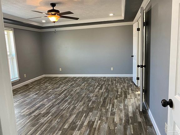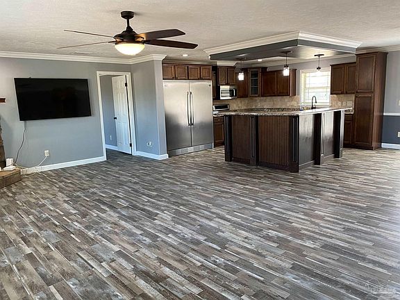BACK ON THE MARKET!!! Buyer never even scheduled inspections. There loss is your gain!!! Enjoy outdoor living and privacy on almost 5 acres of mostly cleared and well maintained land! This modular home with 2x6 framing and HardiPlank siding has everything a family needs! The roof is brand new after Hurricane Sally and fresh paint throughout the home. A large open kitchen/dining area that is great for entertaining with a nice sized breakfast bar with pendleton lighting hanging over the bar, plenty of cabinets, two lazy Susans, double sink, convection oven/gas range, extra large refrigerator/freezer, dishwasher, recess lighting, and tile back splash. There is a custom designed laundry room/butler's pantry that you enter by way of a glass insert barn door. Relax in the living room by the beautiful gas stone fireplace, luxury vinyl plank wood flooring throughout the home, crown molding throughout the home, and six panel doors. Master bedroom is spacious and has trey ceilings, ceiling fan, and recess lighting. Double doors lead into the spa like master bathroom with an over sized tub and large walk-in shower! The bathroom features a double vanity sink, 2 closets (one is 14 ft long!) The additional 2 bedrooms are a nice size and have deep walk in closets. Utilize the French doors to exit onto the 24x14 deck with a retractable awning where you can relax and enjoy the beauty of the outdoors! There is a 10x20 shop with lighting, a 6x4 pump house, and this home also offers a filtration system! There is a 70+ fruit tree orchard that includes apple, peach, pear, and plum trees along with 2 blueberry bushes. A chicken coop that has 14 Barred Rock chickens is available if the buyer is interested. A custom designed outdoor kitchen with a large Big Green Egg and a 36" Blackstone griddle, which both convey. Agent is owner of property.