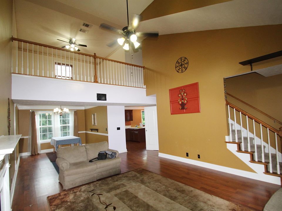 Two story, vaulted greatroom with open loft bonus overlook with spindles, kitchen with bar & breakfast room, formal dining, covered front porch. Jetted tub in owners bath. Large rear deck overlooking nature area. Gas fireplace.