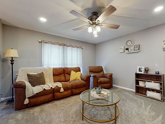 Completely renovated 4 bedroom 2 bath split level home with a 3 stall 60 foot long tandem garage and loft. Located in a great family-friendly neighborhood. Upstairs has an open concept kitchen/ dining room with all updated stainless steel appliances, new cabinets, backsplash, countertop, and under cabinet lighting. The living room has a large picture window. The main bathroom has a double sink vanity and is completely new with updated plumbing and fixtures. There are also 3 bedrooms with all new ceiling fans and good-sized closets. Downstairs is a large family room with an updated wood-burning brick fireplace. The master bedroom located downstairs is HUGE with an very large walk-in closet. The master bedroom has a completely updated en suite bathroom with plenty of storage that is accessible from the family room as well. All throughout the house is new flooring, paint, windows, doors, trim, lighting, updated electrical and plumbing. New AC and furnace installed in the summer of 2020. There is a large backyard with an inground firepit, concrete patio, and new deck. All new siding, roof, and gutters too.