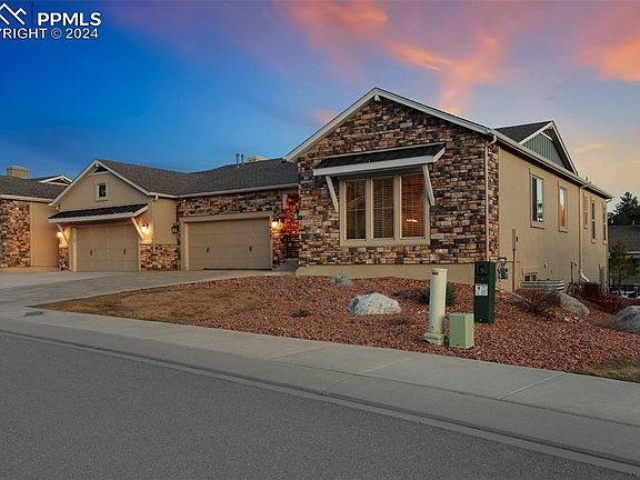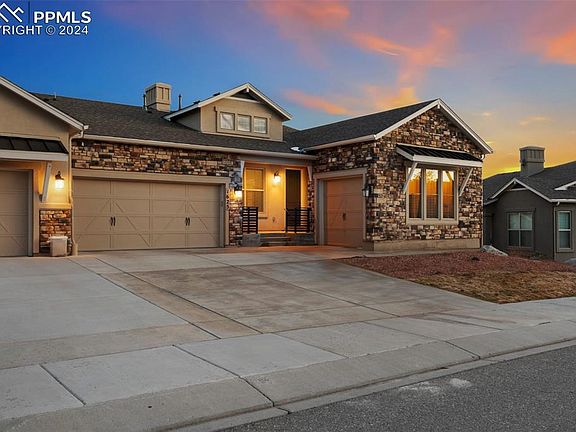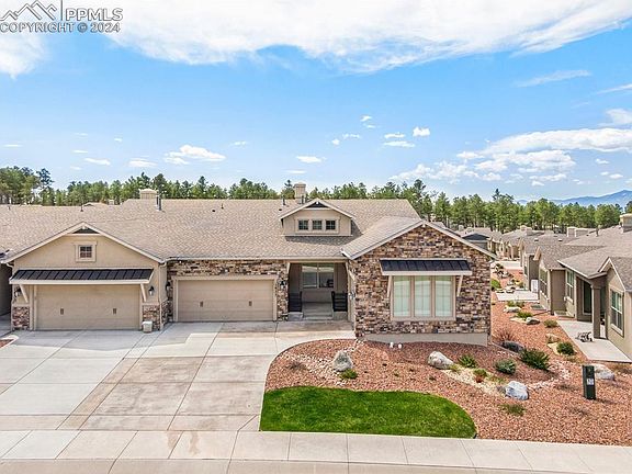 Meticulously maintained, highly upgraded, maintenance free San Isabel paired patio model by Classic Homes, located in the desirable Sanctuary Pointe neighborhood, nestled among majestic pines. This gorgeous ranch style home with garden level lower level boasts approximately 3,702 FSF with 4 bedrooms and 4.5 baths plus a main level office. The open and bright floor plan is designed for comfort with luxurious finishes throughout. Venture into the home and take in the large office and main level bedroom with private en-suite bathroom. Continue into the living room/dining room/kitchen area that features a gas fireplace w/stone surround, ceiling fan and a wall of windows. The Chef's kitchen features antique white maple cabinets with custom backsplash, large center island with slab granite, huge breakfast bar, stainless steel Kitchen Aid appliances, a gas cooktop, double ovens which are a lifesaver when hosting holiday gatherings, and a spacious pantry. The dining area walks out to expanded deck w/ sweeping views, complete with a gas line for outdoor grilling. Continue into the spacious master suite, which connects to the spa like master bath w/dual sinks, massive shower w/designer tile, separate water closet & huge walk-in closet. Venture downstairs into the fully finished garden level lower level that features one foot taller ceilings and includes an inviting family room w/stone surrounded gas fireplace, custom designed media center & a remarkable recreation room w/huge dry bar. All the ingredients for the perfect place to entertain family and guests. There are 2 additional oversized bedrooms & 2 full baths which complete the lower level. 3 Car divided garage & central AC for your convenience. Grounds are well kept featuring mature landscaping w/all maintenance taken care of by the HOA. See future park plans! Zoned to award winning D-38 schools and close to all Monument and Northern Colorado Springs Amenities. Easy access to Hwy 83 and I-25- quick commute to Denver!