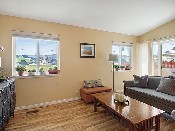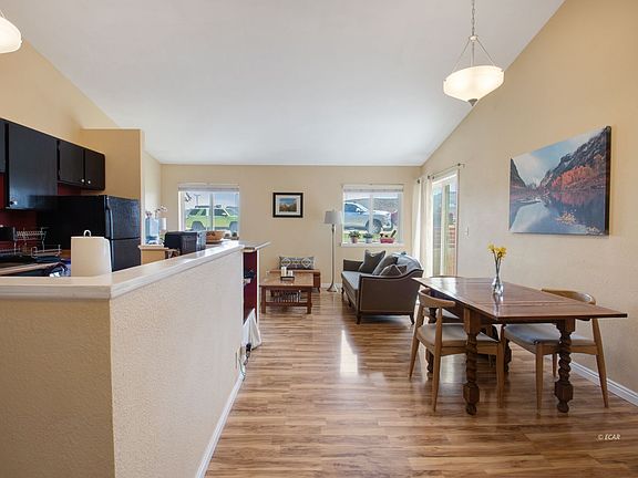 A low maintenance home or investment property in the heart of Elko! This well cared for townhome has had thoughtful updates, including an improved kitchen layout, new flooring and paint throughout! Utilities have been updated as well with a newer water heater and new furnace, air conditioning was added in 2021! You will love the feel of the open concept living, kitchen and dining space with vaulted ceilings and a sliding glass door giving access to the backyard, perfect for entertaining! The master bedroom has a walk in closet with a sliding glass door giving you access to the deck out back, so convenient! Storage is not a problem either as this home comes with a detached single car garage located right by the home, and the garage features a mezzanine with ladder access! Convenient Off street parking with easy access from the fenced in patio area with a gate. Hurry and see this home, it will not last!!!