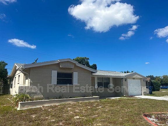 Nice Holiday home on a corner lot! Fresh neutral paint, tile and wood-look vinyl flooring throughout, ceiling fans in family room and bedrooms. The front living room is nice and bright leading into the kitchen which has an open feel, oak cabinets, a nice backsplash and ample counter space. The back of the home features a family room and bonus room which leads out to the fenced backyard. One full bath near the bedrooms and an additional bathroom with a shower is located in the garage. This home is convenient to US 19 for easy travel to Tarpon/Clearwater and is also close to thriving New Port Richey and the Gulf Coast.