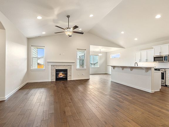 Still in brand new condition! Seller's loss is your gain. Seller has over $500,000 into this amazing home. Hayden home, Orchard style single level home built in 2021 on an upgraded Premier Lot. Oversized lot offers concrete RV parking, fully fenced, landscaped with in-ground timed sprinklers in the front & back yards, back covered patio. Hardwood floors in the kitchen, dining, living & hallway. Open living rm, to dining rm & kitchen with Quartz counters, upgraded stainless steel appliances, 5 burner gas cook top. Living rm with tile gas log fireplace, ceiling fan & wired for TV with outlets placed in each of the three bedrooms plus above the fireplace. Primary suite w/ ceiling fan, Lg soaking tub, separate shower & water closet. All wood wrapped windows with blinds already installed. Guest rooms in front of the home, bathrooms w/ quarts counter tops & white upgraded cabinets. It's ready to move in w/o waiting for a new house to be built.