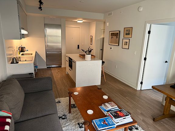 A rare chance to rent in a recently constructed DC condominium building! Built in 2021, the owner has been the only occupant of this unit until moving last month. The unit is a 1 bedroom, 1 bathroom luxury condo on the fourth floor, with floor to ceiling windows and a balcony overlooking Quincy Lane's third-story garden. It features quartz countertops and a kitchen island with Bosch appliances including range/oven, microwave, dishwasher, refrigerator, and in-unit washer/dryer. Central air. The building features a helpful concierge, rooftop pool, grills, fitness center, and a spacious lounge with Capitol views and a fireplace. Construction is solid and well-soundproofed between floors and your future neighbors. The vibrant Eckington / Brookland neighborhood is within easy walking distance of the NOMA-Gallaudet Metro Station on the Red Line as well as Union Market. Neighborhood amenities include the Metropolitan Branch Trail, Athelia Tanner Park, and Bouldering Project climbing gym. No smoking allowed. Renter pays water, electric, wifi.