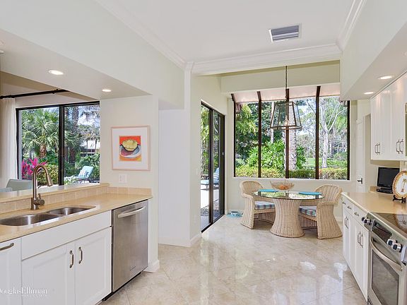 Location! Location! Location! This bright & open 2BR + Den/convertible 3BR, 2.5 BA home ''feels'' like Florida with Breakers golf course on one side & common area along the other. Great Room with vaulted ceilings. Updated marble flooring, updated white kitchen with granite counters, stainless steel appl. Charming Master suite opens to covered patio and has ensuite master bath with updated white wood cabinets, separate tub and shower. Guest BR has plantation shutters, walk-in closet and adjoining bath. But the privacy and large patio is what makes this home unique and lives like a much larger home. With both open & covered patios around the pool, this home offers wonderful entertainment area. Roof replaced 2009. Walking distance to the club.