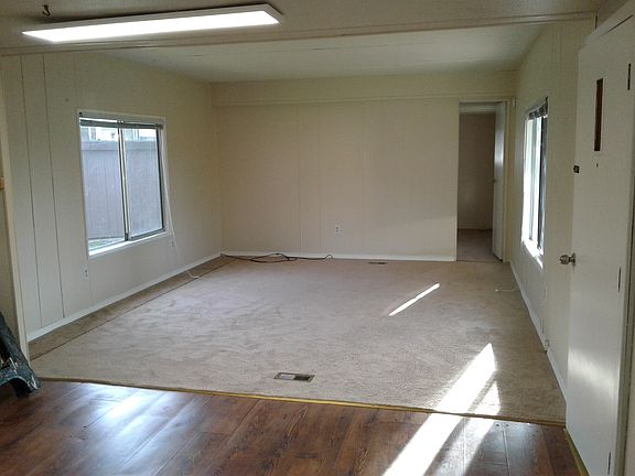 This large and spacious two-bedroom mobile home includes a large living room and open kitchen. The mobile home has been fixed up including the installation of six new LED lights in the bedrooms, kitchen, and bathroom. New carpet has been installed in the living room and bedroom as well as new outdoor carpet installed in the covered porch. The kitchen, hallway, first bedroom and main bathroom have a laminated wood floor. The living room and one bedroom has been painted. The main bathroom includes large shower unit that features easy in and easy exit. While there is not a washer and dryer unit, the main bathroom includes connections for a clothes washer and dryer. Owner financing is available for people with good credit. A minimum down payment of $5,000.