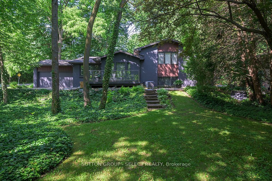 Stunning lot, over 1/3 acre, full and lush with soaring trees & trailing gardens. Completely renovated (2015) and newly landscaped, directly across from the entrance to Helen Mott Shaw park with forest trails & playground. Walk to Masonville School, restaurants, shopping. Front of house offers a lovely deck - perfect for nature lovers having morning coffee while enjoying the forest views. Step inside the foyer addition to a brilliant and upscale open-concept design with sunlight spilling through the windows across the hardwood floors. Freshly painted throughout. Beautiful family room highlights a cathedral ceiling, romantic fireplace & opens onto dining area. Gourmet kitchen gleams with crisp white cabinetry, island seating, quartz counters & designer lighting. New speak-easy door connecting the living area to the attached garage. Step down into the sunroom overlooking the lush backyard & patios. 2nd floor adds 3 bedrooms including huge bedroom (previous 2 rooms) looking onto the grounds. 3rd bedroom suite w/ walk in closet & 3-piece ensuite. 3-piece common bath. Lower level enjoys oversized family room with large windows, 3-piece bath & a beautiful guest room with huge windows & a second fireplace. Finished basement with lots of pot lights, polished concrete floor, laundry and loads of storage with stairs to heated double garage. New catch basin, French drain, and irrigation system in the yard. Modern elegance, privacy and a mature forested landscape all come together in this sought after neighbourhood at 1625 Hillside Drive.