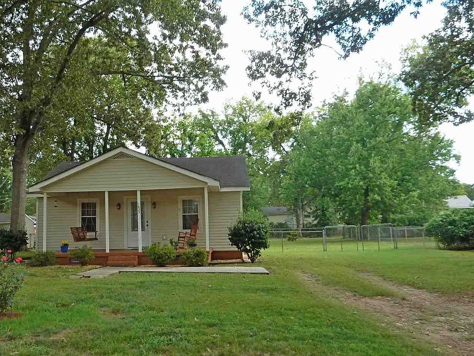 Completely updated inside and outside! New in 2010: vinyl siding, windows, roof, HVAC, electrical, breaker box, plumbing, plumbing and light fixtures, insulation, sheetrock, laminate and tile flooring, leaded glass front door, kitchen cabinets and appliances. Welcome your guests on the 20x8 covered front porch! Enjoy shady front yard and private 10x12 deck at the rear. Wood wainscoting and chair rail in hall. Tile in kitchen and bath. Spacious bath has tile floors, double vanity, tub/shower, separate toilet room, separate laundry room. Detached storage building. DOUBLE LOT! Alley behind. Just like new! Move-in ready! Decatur City Schools verified Oak Park Elementary.