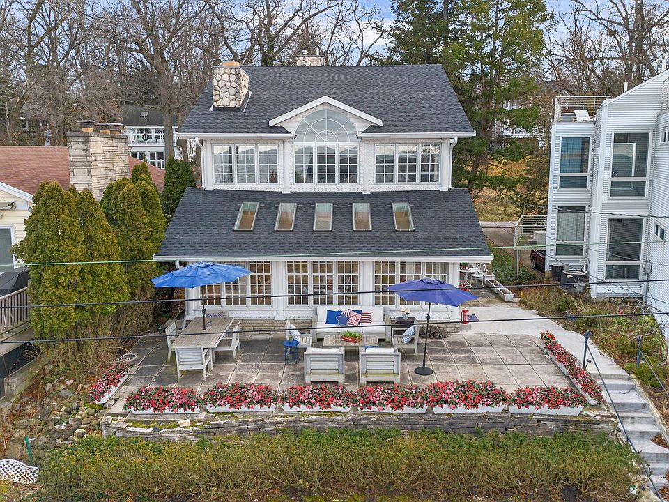 Quintessential Beach Cottage! Embrace the chance to claim this classic cottage in the heart of Long Beach. Elevated on a prime Lake Shore Drive lot, this home showcases captivating views of Lake Michigan and the Chicago skyline. Enjoy the comfort and charm of an expansive living room, a snug den, and a kitchen with a delightful breakfast nook. The residence encompasses three bedrooms, including a lake-view ensuite primary, a spacious bunk room with its own ensuite spanning nearly 300 square feet, and a quaint first-floor bedroom. Relish the tranquility of the expansive front porch, providing an ideal setting to appreciate the stunning views and unwind. The walkout basement features a convenient beach shower and half bath, perfect for refreshing after a sun-soaked day by the beach. Beach access at both stops 16 and 18 is just a short stroll away. Parking is hassle-free with parking on LSD and behind the house off Nichols Ct. Don't miss the opportunity to own this enchanting retreat.