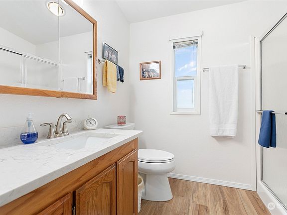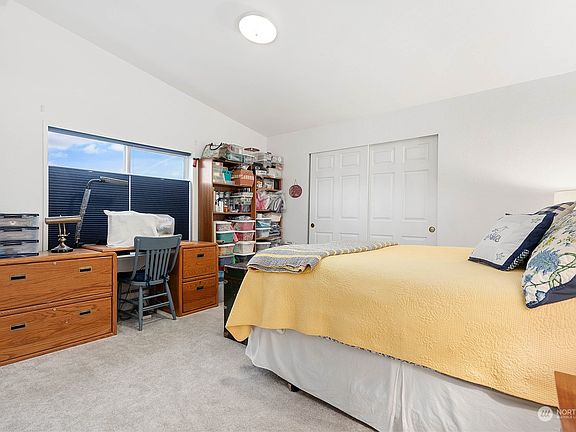 Affordable & Updated! This 2 bed/2 bath home is bright, clean and ready for new owners. Updates are extensive and include, all new flooring, new roof, all new appliances, refinished kitchen cabinets with rollout shelving installed, and newly painted inside and out. The lot has a large partially fenced backyard and a garage with ample storage. Mount Vista Park is well maintained conveniently located close to the I-5 and Haggen's shopping center. Space rent is $500 a month. There is no age restriction, and two small furry friends are allowed. Priced to sell!