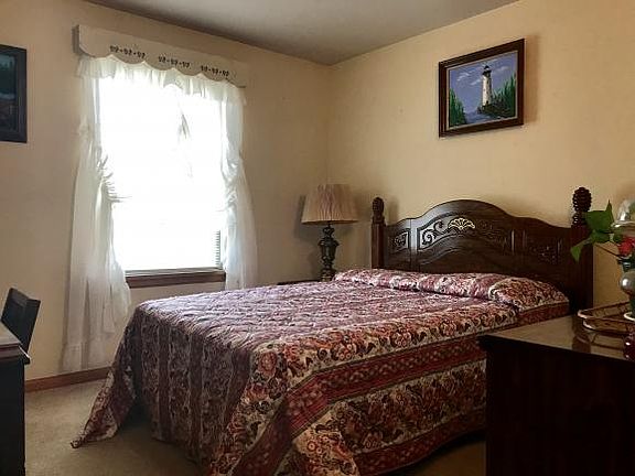 Country setting with the convenience of being minutes from town and the interstate. Large enclosed porch. Kitchen has lots of cabinets and counter space. Cedar lined closets. Electric fireplace in the living room. Attached and detached garage with shop area.