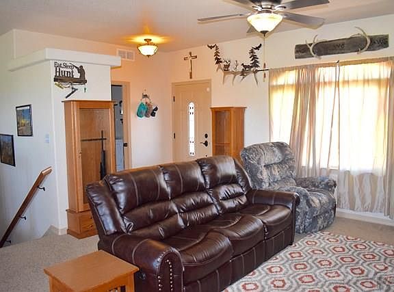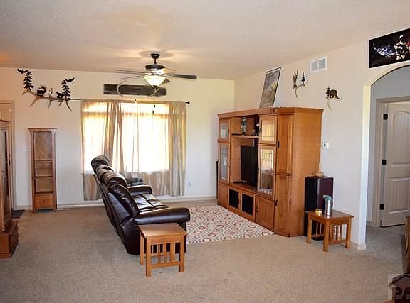 Don't miss out on this well maintained 4-bedroom, 3 bathroom home with a full finished basement! Nice layout with vaulted ceilings, vinyl windows, central air and 2-car garage. You will appreciate the open layout and roomy kitchen with center island. Home has split bedroom design, comes with all kitchen appliances and is move-in ready! It sits on an acre of land, is perfect for RV parking, and is a corner lot. Enjoy the views from the rear covered patio. This is a great home for Commuters with easy access to I-25 from Exit 108. Only 25 minutes to the B Gate at Fort Carson. This one won't last! Call today