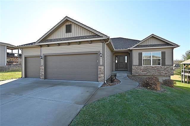 Don't miss this one! No need to wait on new construction in this great subdivision in the Northland! Former model home is move in ready with a beautiful open floorplan! Home features main level master & spare bedroom/office w/2 additional bedrooms in lower level. Hardwood floors in kitchen,great room,foyer & entry. Granite counters in kitchen and custom cabinets. Bronze fixtures and hardware. Kitchen has island & pantry. Lower Level is stubbed for wet bar. Backs to green space. Master bath has double vanity, tile floors, walk-in shower. Mud room off the foyer with boot bench leads to laundry that has direct access to master closet