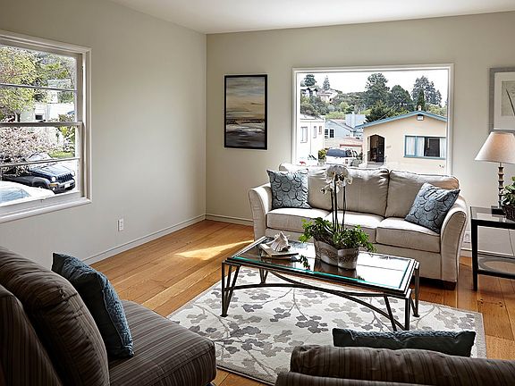 Bright 2bedroom, 2.5-bath home in a great location, steps from the Colusa Circle. First time on the market!- Two+ bedrooms, two baths on main level, half bath downstairs. Handsome, spacious living room with fireplace.- Sunny dining room.- Efficient, open kitchen with breakfast area.- Family room open to low-maintenance, level backyard with patio.- Beautiful hardwood floors and new carpeting and linoleum.- Freshly painted inside and out.- Downstairs with laundry room, plus room, half bath, andattached garage.- Just steps to Kensington Farmer s Market, Colusa Circle shops and restaurants, and Transbay bus.