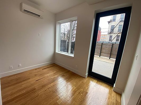 Welcome to your new home! This spacious 3 bedroom / 1 bathroom apartment offers private balconies in each bedroom, providing a peaceful outdoor space to relax and unwind. Step inside and admire the beautiful hardwood floors and contemporary finishes throughout. The sleek and modern kitchen is equipped with stainless steel appliances, including a dishwasher, making meal prep and cleanup a breeze. Enjoy plenty of space for entertaining in the large living room, and retreat to the equally sized bedrooms with ample closet space. Stay comfortable year-round with split A/C units in every room, and take advantage of the fantastic building amenities, including a gym, laundry facilities, a lounge, bike room, live-in super, and a roof deck with stunning views. Additional storage space is also available. Conveniently located just minutes from the A and C trains, you'll have easy access to all that the neighborhood has to offer, including some great dining options such as Mama's Fox, Super Power, Mama Kitchen, and Peaches. Don't miss out on this amazing apartment - schedule a viewing today!