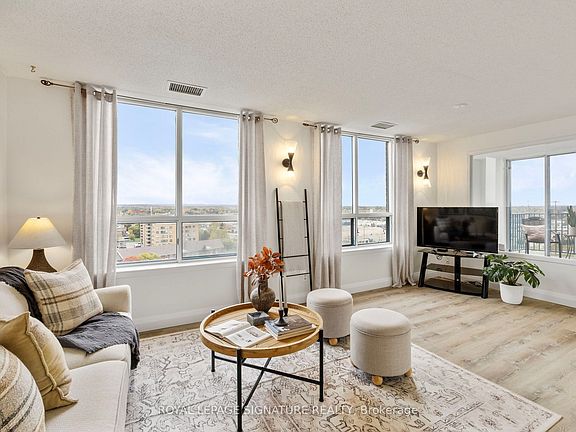 Don't Miss This Rare Opportunity to Own This Exceptional Brockstone Penthouse! Fully renovated in 2025, this stunning penthouse suite offers 771 sq ft of luxurious living space - the largest one-bedroom plus den layout in the building. Featuring two bathrooms, two parking spaces, and a locker, this suite showcases breathtaking northeast views with gorgeous sunrises and abundant natural light. Truly Turnkey Perfection! Brand new open-concept kitchen boasts sleek cabinetry, quartz countertops, stainless steel appliances, a stylish backsplash and modern finishes. The spacious primary bedroom includes a walk-through with his and hers closets and direct access to a beautifully renovated 4-piece semi-ensuite. The bright den is ideal for working from home and offers access to the covered balcony, perfect for enjoying morning coffee or quiet evenings. Luxury vinyl plank flooring flows throughout. This move-in-ready penthouse gem combines luxury, convenience, and lifestyle - perfect for first-time buyers, professionals, or downsizers alike.The all-inclusive $661.39/month maintenance fee covers heat, hydro, water, air conditioning, parking, locker, common elements, and building insurance for truly worry-free living. Ideally located steps to Shops At Pickering City Centre, restaurants, parks, library, recreation centre and offering quick access to Hwy 401, Pickering GO Station, and the exciting new Pickering Casino & Arena District. Families will appreciate proximity to top-rated schools, parks, as well as Lake Ontario waterfront beach and trails, the marina, fantastic shops and restaurants at the south end of Liverpool.