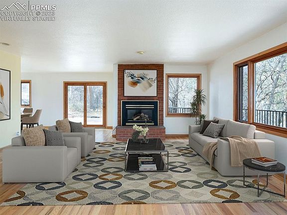 Location, location, location! Don’t miss out on this incredible opportunity to own a well maintained, raised ranch located on Pine Grove Avenue behind the world renown Broadmoor Hotel. Perched hillside, this mid-century charmer sits on nearly half an acre of lush Colorado landscape with views in every direction. As you enter the home you can’t help but notice the immaculate, oak hardwood flooring seamlessly flowing throughout the main level. The open concept living area is perfect for entertaining year-round. Cozy up to the gas fireplace on a snowy winter day or enjoy easy indoor/outdoor entertaining from the dining room which opens directly onto the wraparound Trex patio. The kitchen is ideally located for hosting guests while still maintaining a functional layout for those who love to cook. The main floor of this ranch style home also boasts two sizable spare rooms, a large guest bathroom, easily accessible washer/dryer and a spacious primary bedroom with an en suite bathroom and walk-in closet. For anyone seeking additional living space, look no further than the unfinished basement waiting for your imaginative touch. Additional features include an attached 2 car garage, guest parking, ample storage and loads of potential. Live in the home as-is, remodel - or at this price potentially investigate building a new home. What are you waiting for? Schedule your showing today!