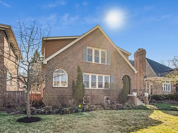 This quintessential Tudor has been updated while retaining all the vintage charm. The entry way opens up to a bright and inviting living room complete with a newly updated fireplace with gas starter. The first floor has hardwood floors, arch ways, built-ins, beautiful woodwork and moldings! The large dining room allows for lots of entertaining space. Off of the dining room is an awesome room that used to be a porch. It makes a terrific office, or a quiet reading and relaxation space. The options are many! The white kitchen has, stainless appliances, hardwood floors and a breakfast bar. At the back of the first floor is the large family room. All four bedrooms are on the second floor. The hardwood floors continue in the bedrooms. The upstairs bathroom was remodeled in 2021. The basement was remodeled in 2019 and has spaces for entertaining and living, an office, a fifth bedroom, a laundry area and tons of storage. Plus a new fridge was recently added. The full bath in the basement was also remodeled in 2019. The home is equipped with 4 zones of heat and AC. The backyard is a lovely entertaining space with a stone patio. New windows will be installed in second half of 2024. Also, the 2 car garage has a second floor storage area and a brand new door.