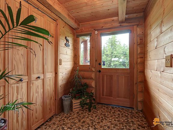 PRICE REDUCTION!! This lovely home has instant Alaskan charm! Log built home withstamped decorative concrete kitchen countertop and backsplash,gas woodstove in vaulted living room, curved paved drive giving asense of privacy from the road, and even a baby apple tree inthe yard. Extra floor space in the open loft can be used for anything! See supplement for more!