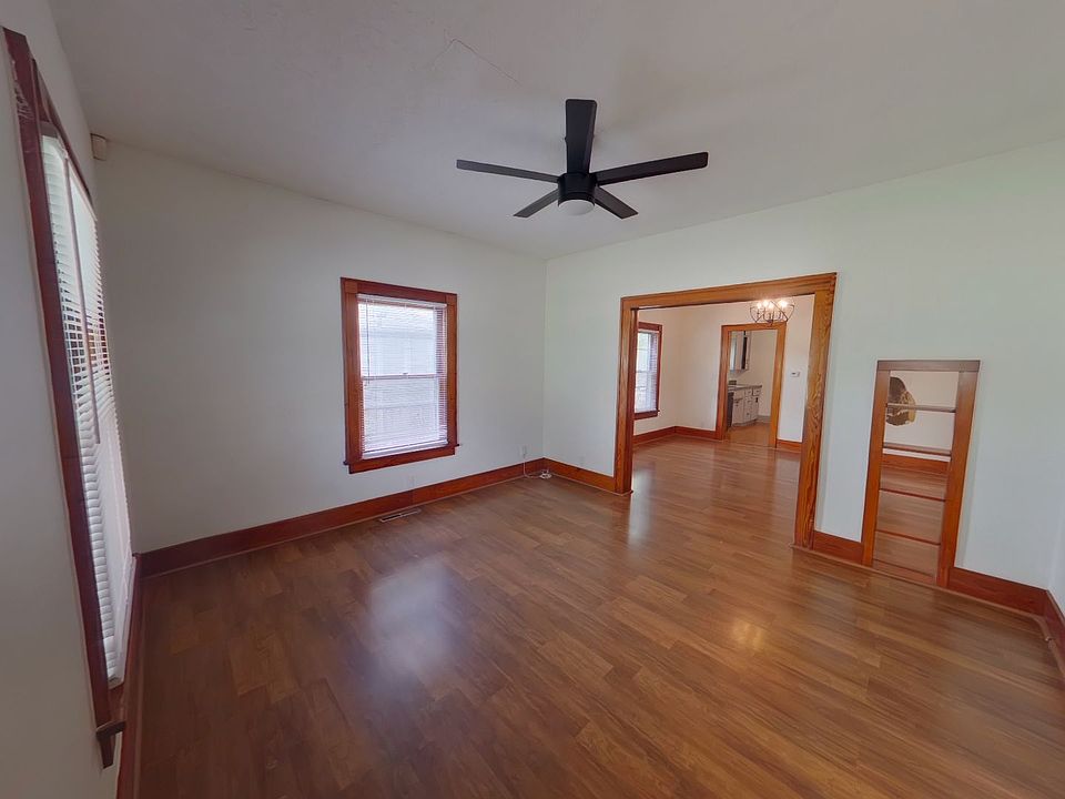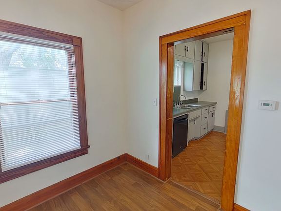 Come see this newly listed two bed, one bath home! With many unique features, this house has a vintage feel with some modern updates. Inside, this house boasts a wide-open living area, spacious dining room, two medium-sized bedrooms, and a clean and recently updated kitchen. Within the kitchen is lots of counter and cabinet space, a few bright windows providing natural lighting, and the door to the backyard. Refrigerator, range oven, and dishwasher are all provided. The basement is unfinished, but perfect for laundry and ample storage. The large backyard is fully enclosed and includes a garage for storage. Parking is available both on street and off street in the driveway.