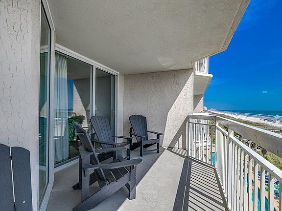 Big, beautiful direct oceanfront corner 4 bedroom condo in the North Tower at Crescent Shores. The North Tower juts out past the South Tower, allowing for amazing ocean and coastline views in both directions. The living room and the master bedroom are both direct oceanfront and share a large balcony. Since this is on a corner, in addition to the direct oceanfront view, there is a bay window in the living room and windows in two of the guest bedrooms. Currently a true second home but this spacious condo would also make an ideal vacation rental property or primary residence. Nicely furnished with tile in the entry hallway, kitchen, dining area and bathrooms. LVP flooring in the living room and bedrooms (no carpet!). Granite counter-tops in the full kitchen and in all bathrooms. Stainless steel kitchen appliances. Recently repainted. The master bedroom has two walk-in closets. The master bath has a jetted garden tub, a shower, and two sinks on the vanity. Ceiling fans in the living room and master bedroom. Wall-mounted flat screen TVs in living room and all bedrooms. Full-sized side by side washer/dryer. There's also an exterior storage closet in the hallway next to the entry door. Crescent Shores features include two large oceanfront pools, a 200 FT lazy river, an oceanfront kiddie pool, 2 oceanfront hot tubs, a heated indoor pool, an exercise room and outdoor barbecue grills. Crescent Beach is know for its quiet family atmosphere but it's close to many attractions. About a mile to the north is Main Street in Ocean Drive, a hub of activity for dining, nightlife and festivals. The huge Barefoot Landing entertainment complex - packed with restaurants, shops and live entertainment, is only about 2 miles away. The HOA fee includes water/sewer, cable, internet, and building insurance. All information is deemed correct, but it is the responsibility of the buyers and their agent to verify all information.