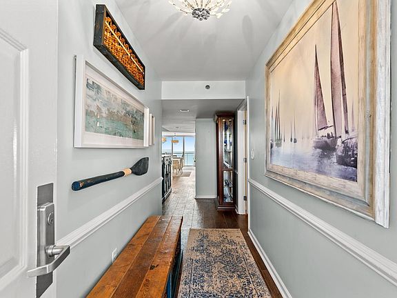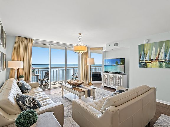 A spectacular 4-bedroom 4 bathroom unit in Crescent Shores directly oceanfront in North Myrtle Beach. This unit was used as a primary residence for the past 7 years. During this time, the owner customized the entire unit from ceilings to floors, making it unique to the building. Some of the extraordinary additions include a stunning kitchen with custom cabinetry for extra storage and glass cabinet doors for display purposes. Flat ceilings and ceramic tile throughout the entire unit. Custom drapes, light fixtures, furniture and artwork gives the unit a luxury designer feel. All the appliances were updated during the owner’s residency, as well as the hot water heater. The very latest addition was a brand-new HVAC installed in March 2025! The direct view of the Atlantic Ocean is outstanding from the kitchen, living room and primary bedroom. The oceanfront balcony is very spacious and offers ample room for an outdoor sofa and chairs. The unit offers large closets in every room, including a walk-in closet in the primary bedroom and an outdoor storage room just off the entryway. Do not miss this opportunity to own in a top-rated building offering all the desired amenities, as well as a turnkey unit that includes designer quality furnishings with all the bells and whistles! It is a great location near all the Beach's finest shopping, dining, golf, and entertainment. Excellent rental income for investment, second home or enjoy as a beach primary residence. Turn Key.