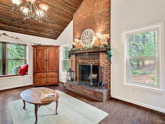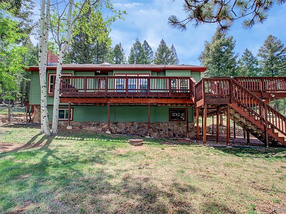 Welcome to this picturesque, updated mountain home on 3 acres located in Woodland Park! This home is just minutes from shopping, restaurants, downtown and about 25 minutes to downtown Colorado Springs. As you enter the property you are surrounded by lush Aspens/Pines and green open spaces which gives you the opportunity do what you heart desires. This property has been used as a private 18 hole disc golf course and still has the option of being used as one! Once you see the home you are met with a large well maintained wood deck with views to the Rampart Range mountains, with the deck bringing you into the main level of the home. As you enter you are met with tall ceilings, wood flooring and skylights! Once you enter the living room you are drawn to the wood burning fireplace to make it feel like the mountain getaway it truly is! Also in the living room is a walk out to the large back deck equipped with a newer hot tub and a large dog run! The kitchen boasts granite counter tops, custom wood cabinetry, a breakfast bar and matching stainless steel appliances all flowing naturally into the dining area. The spacious dining area has a gas stove for warmth during the winter months along with a walk out to the large main deck! Down the hall you have 2 bedrooms, one of which has a walk out, a full bathroom and laundry room. The upper area has a loft style primary bedroom with an en suite 3/4 bathroom and a spacious walk in closet! The custom shower and updated primary bath provides luxurious privacy with all the needed amenities! On the lower level, there is a family room equipped with a gas burning fireplace, a bedroom, a half bathroom and access to and from the 2 car oversized garage. Don't miss your opportunity to own this amazing mountain home! Give us a call and come see this home today!