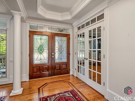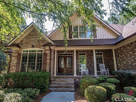 Located in the North Oconee school district as well as 1 mile from Malcom Bridge Elementary and Middle Schools, this 5BR/4.5BA home is in one of Oconee's premier swim/tennis community's - Meridian! The large family room offers a stacked stone fireplace, coffered ceiling which is open to the kitchen. The kitchen connects to the tiled screened porch and connects to a deck that overlooks a private yard. Kitchen includes lots of custom cabinets, granite counter tops, and professional grade appliances and island. Extras include: front office with bead board and built-ins, owner's suite on main with 2 vanities and two closets. Three additional bedrooms upstairs with private baths. Finished terrace level with additional bedroom, bath, rec room, playroom, wet bar, and exercise room. Additional extras: Custom trim package, site finished hardwood floors, large laundry room, central vacuum, 3 car garage, circular drive, updated roof, new paint, and is situated on over a 1 acre lot. Located minutes from Hwy 316 & Hwy 78, 2 miles to new stores and medical offices including the Epps Village Shopping Center, and approx. 15 minutes to downtown Athens. This is a rare find!