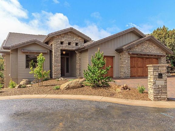 New single level home in Pinon Peaks at Hassyampa! Grand entry w/ soaring ceilings leads open great room w/ rustic hardwood floors & floor-to-ceiling stone fireplace/ entertainment center. Luxurious chef's kitchen w/ granite countertops, alder cabinetry, new Bosch appliances, walk-in pantry & large island prefect to prepare gourmet meals or host seasonal parties. Beautiful Alder woodwork throughout the home w/ solid wood doors, matching cabinetry, & beamed ceilings. Huge covered deck commanding views of seasonal creek, boulders & tall pines. Multiple paver patios create an open feel w/ mature lush landscaping make this home a work of art. Level drive leads to the spacious 3+ car garage which gives this home an easy entry. This is the home you've been waiting for!