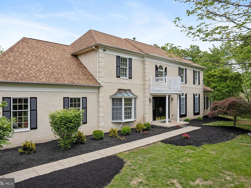 Welcome to 1625 Stonington Circle, a captivating blend of classic elegance and prime location in Gwynedd Knoll's esteemed "The Estates" section! Nestled in a welcoming, tight-knit community, this home offers both comfort and a true sense of belonging. Step inside this bright, move-in ready residence and discover an open floor plan bathed in fresh neutral tones. Designed for modern living, the spacious interiors are instantly inviting. This stately home, peacefully set back from the road, exudes instant curb appeal with its charming white picket fencing, long driveway, meticulous landscaping, classic black shutters, and an elegant Juliet balcony gracing the double-sized entrance. Beyond the threshold, a grand two-story foyer awaits, featuring a gracefully curved staircase and gleaming Brazilian hardwood flooring that extends throughout much of the main level. To your right, a sun-filled formal living room offers a serene retreat. To the left, an elegant dining room, complete with wainscoting and a beautiful bay window, is perfectly poised for memorable formal gatherings. The heart of the home is the expansive kitchen, a culinary dream with tile floors, stainless steel appliances including a double oven, and a large center island with a cooktop and seating. You'll love the built-in desk area, abundant prep space, and amazing storage, including a dedicated pantry. Adjacent, a casual dining area with sliding glass doors provides seamless access and delightful views of the backyard. The kitchen flows effortlessly into an oversized family room, featuring built-in shelving surrounding a cozy brick fireplace – ideal for relaxing evenings. Beyond the family room, discover a tranquil four-season sunroom, flooded with natural light from its numerous windows, offering the perfect spot to unwind and embrace nature year-round. A convenient powder room, direct garage access, and a practical laundry/mud room with yard access complete this thoughtfully designed main level. Upstairs, four generously sized bedrooms provide comfort and privacy, serviced by two full baths. The primary suite is exceptionally spacious, boasting a separate sitting area, a huge walk-in closet, and a luxurious primary bath with a dual vanity, skylight, a garden soaking tub, and a standalone shower – your private oasis. The three additional bedrooms are well-proportioned with ample closet space, all featuring brand new neutral carpeting, and share a nicely sized main bath with a dual vanity. Should you ever need more space, the lower level basement is framed for easy finishing, offering incredible potential for expansion, plus ample storage and all utilities. The fully fenced level backyard is a blank canvas, ready for you to create your ultimate entertaining haven and outdoor retreat! A two-car side-turned garage provides extra storage for yard tools and bikes. Recent significant upgrades include fresh paint throughout, a new two-zoned heat and air system, and a new hot water tank. The roof is approximately 10 years old, offering peace of mind. Located just minutes from fabulous dining, diverse shopping, golf courses, Trader Joe's, charming coffee shops, vineyards, and breweries, this home also benefits from being part of the excellent Wissahickon Township School System! Don't miss the chance to make 1625 Stonington Circle your new address.