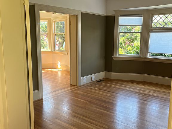 Located one block east of Shattuck Avenue in the heart of Berkeley's famed Gourmet Ghetto, 1625 Walnut Street is a ground floor- two bedroom, one bath 1250 Sq Ft unit in a well maintained Queen Anne, converted into three apartments. The front door opens into an entry foyer with your living room to the right and and the dining room to the left. All rooms except the kitchen bath feature hardwood floors and bay windows. Both sun filled bedrooms have paned glass double doors, hardwood floors with cellular window shades. The modern kitchen has a stainless steel farm sink, a gas range, built in microwave, dishwasher, full size refrigerator, cork floor tiles, buthcherblock countertops and gleaming cabinetry. There is space for a cafe table in the corner of the kitchen. The bathroom has a pedestal sink and a walk-in shower. The apartment has central heat with a programable thermostat, and off street parking. This property is subject to the Fair Chance Housing Ordinance no smoking no pets Minimum credit score: 675 Minimum debt to income ratio: 30% Application fee: $40.00 for full screening criteria application procedure contact: