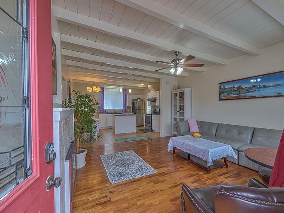 This newly-remodeled 3 bed/2 bath house on a quiet and peaceful one-way street with an ocean view. The house is well-lit with sunlight from both front and rear windows. The newly painted deck is convenient to enjoy the fresh air and BBQ. The kitchen was tastefully updated with the island counter, open space to the living room. The storage shed in the backyard provides plenty of space. Plus: The house is fully furnished! The house has many special features: 1. Solar panels on the roof have saved the homeowner a lot of money on utility bills. 2. Heating bars installed in each bedroom and living room are clean, warm, quiet, and energy-efficient. The heating bar is designed for the solar panels on the roof. 3. Tankless water heater generates instant hot water. 4. Sturdy and beautiful European-style redwood ceiling. 5. Nice concrete front yard offers spacious off-street parking space for 3-4 vehicles. 6. Brand-new stove and the most powerful exhaust fan make the cooking so pleasant.